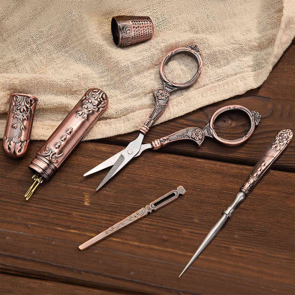 | Measurement: | Tin Box - 5.9" Γ 3.54" Γ 1.18"(15cm Γ 9cm Γ 3cm) Scissors - 4.33"(11cm) Needle Threader - 2.75"(7cm) Needle Box - 3.42"(8.7cm) Thimble - 0.7"(1.8cm) Awl - 4.72"(12cm) |
